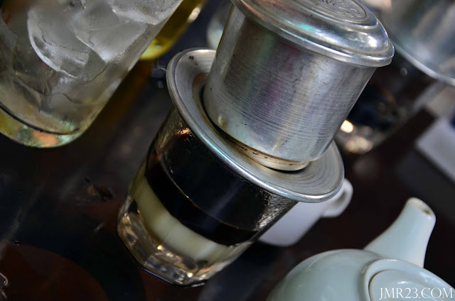 Kat Vietnam lak, diorang kasi gelas kecik dan susu. Then kasi cam cawan besi yang di bawahnya ada lubang-lubang. Tujuannya nak tapis kopi dan serbuk kopi tu. Kopi pekat tu akan menitik satu demi satu sampai kering. so, jangan mimpi le, kalo ko order cam ” Abe, kopi o pekat se!!“, dapat kopi terus dapat hirup ye..Kena sabar dan tekun menunggu hingga titisan terakhir ye.. Kopi ais??? sama je sistem dia. Kena tunggu hingga titisan terakhir dan tuang dalam gelas yang ada ais ketul..baru la kaw ko…