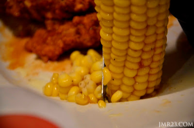 Makan jagung rebus style manja. Kena potong sebijik-bijik..Nasib baik tak kena suap sebijik sebijik.
