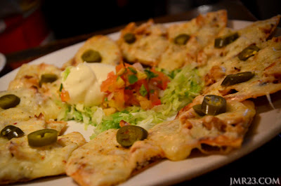 Untuk Starter, Kicking Jack Nachos, resepi baru nih. Atas nachos tu penuh ngan Jack cheese, kat tengah-tengah lak ada ayam. Dihidangkan dengan house made pico de gallo ngan sour cream. Ni bukan takat starter, leh buat finisher sekali kot untuk dua orang.