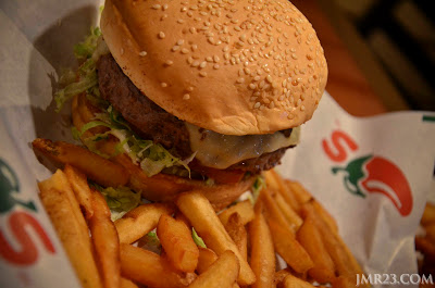 Ini menu untuk orang selera besar..hahahah..Big Mouth Burger-Mushroom Swiss. Terbaik!!! Dengan sos cendawan & kepingan cendawan & cheese yang meleleh keluar. Syorgaa..betul betul memberi cabaran, belum lagi 3/4 aku habeskan, perut dah rasa ketat. Owh demm..tengok gambar dalam menu cam kecik jer..rupa-rupanya anak gajah nye beger.