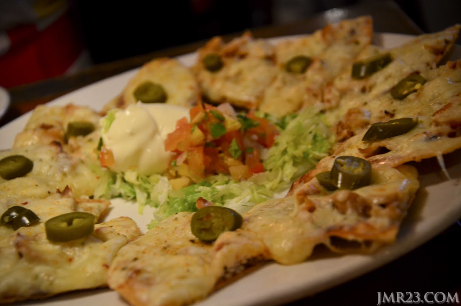 Untuk Starter, Kicking Jack Nachos, resepi baru nih. Atas nachos tu penuh ngan Jack cheese, kat tengah-tengah lak ada ayam. Dihidangkan dengan house made pico de gallo ngan sour cream. Ni bukan takat starter, leh buat finisher sekali kot untuk dua orang.